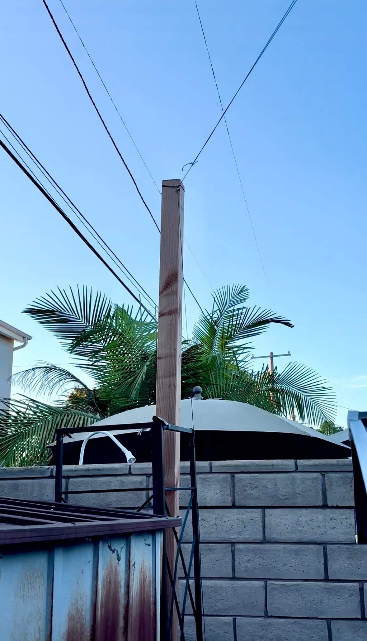 After hearing about the W5GI Mystery Antenna from KI6CR for years, then hearing all the operators at Field Day '25 go crazy over it, I decided to set one up. I've been very pleased with the antenna, and surprised at how well it does despite the compromise imposed on it running between our utility lines, asymmetrical pole elevation, and long run of cheap coax